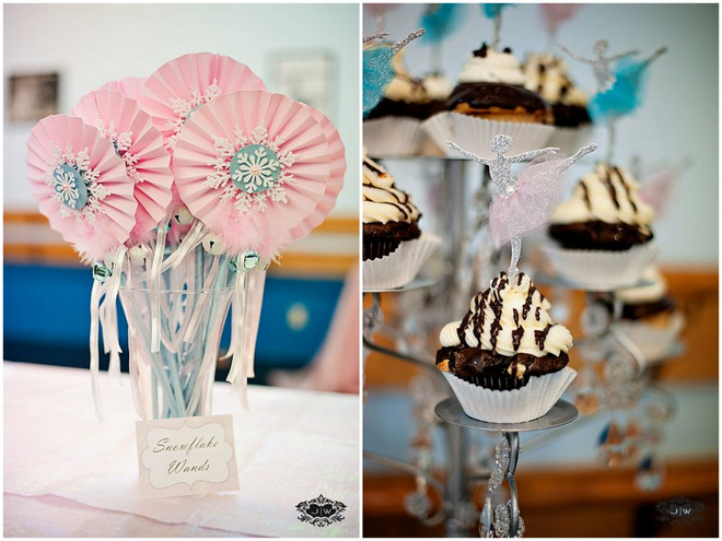 Here is what Carla said about her party- “My daughter Ava has been in ballet for 4 years now, so when she asked for a ballet theme birthday party it was only fitting! At first she told me that she wanted simply pink and white, but for me, that theme would be what everyone would expect from a ballet party.We came to the agreement of a Nutcracker theme since Christmas is not far from her birthday and the Nutcracker is her favorite ballet…well the only one that she has seen since she is only six. And what better theme than the “Land of the Snow” scene from the ballet! I got to work on designing an invitation and other social stationary. It was a fantastic way to incorporate both the ballet and the upcoming snow season (not that it ever snows in south Florida but we can pretend).The wonderful staff at her dance studio, Atlantic Arts Academy, were so gracious to allow me to host Ava’s party at the studio. The party started with the talented Mrs. Rose teaching all 14 girls a lesson to the sounds of the Nutcracker ballet. The girls were all giddy and smiles from ear to ear! I’ve never seen Ava have so much fun! Not only was she doing what she absolutely loves…dancing ballet…she was surrounded by all of her favorite girls!”Vendors: