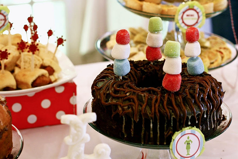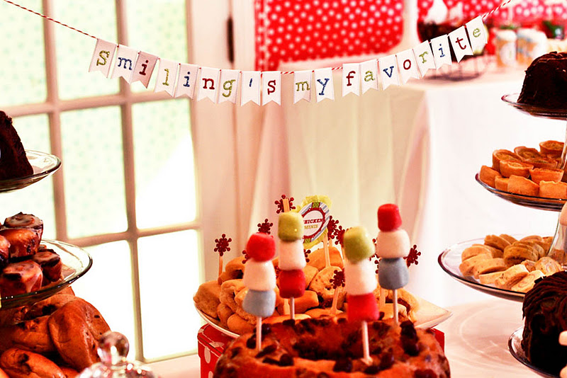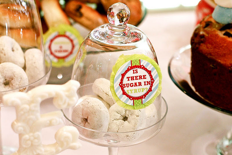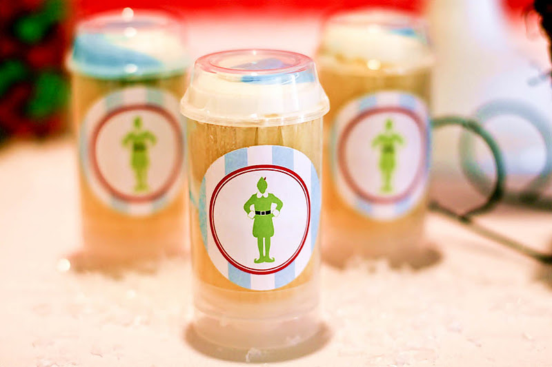 Here is what Dina said about her party- “ELF has to be my favorite holiday movie of all times and thought it would be the perfect inspiration for our annual holiday Brunch. I mixed the traditional red and green holiday color pallet with a little baby blue to create this cheerful get together. I was so excited to work with the fabulous Anders Ruff Designs on the printables. The Buddy the Elf silhouette was my favorite part! I love working with creative and talented people – elements from Edible Details, The Purple Pug, Vintage Confections, Yummy Delicious Cookies by Whimsical Originals, The Whimsical Spoon and Shop Sweet Lulu’s totally made this Brunch!
