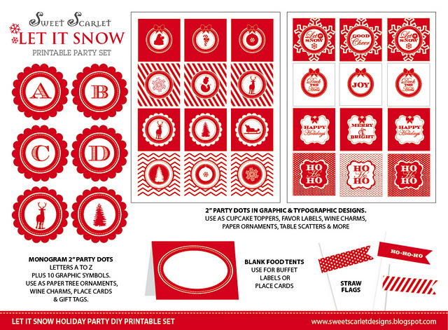This DIY Printable Party Set is available in my Etsy shop and includes cupcake toppers, monogrammed party dots, bunting, water and wine bottle labels, large and mini candy bar wrappers, straw flags, gift tags and gift cards. All for just $10. Just print, trim & create. Let it snow, let it snow, let snow!”