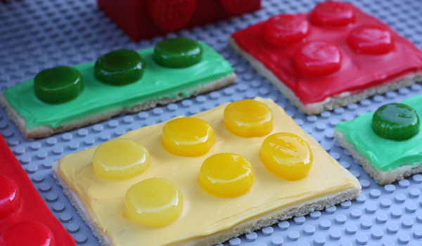 The sugar cookie lego building blocks- I search high and low for candies that were round without any holes. Alas, I found them at the dollar store!