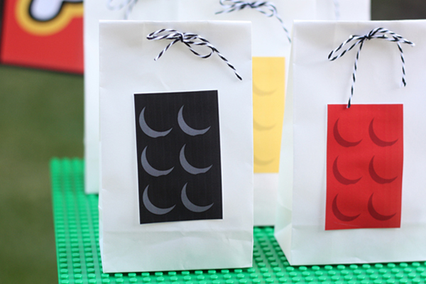 I found little mini figure lanterns at Toy R Us and couldn’t pass them up! They made the best little “cheerleaders” holding a lego sign of the birthday boy’s name (they even light up).”