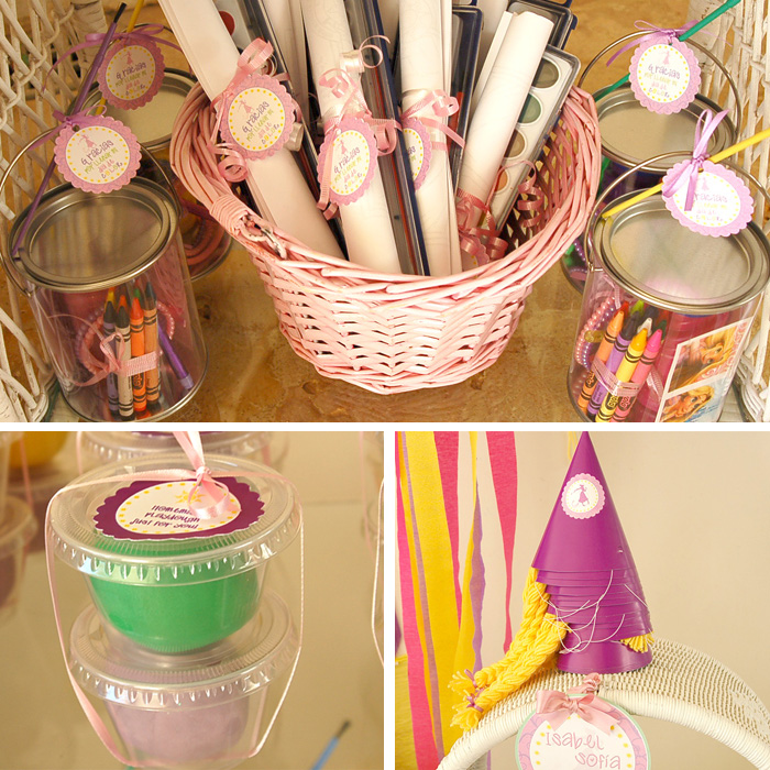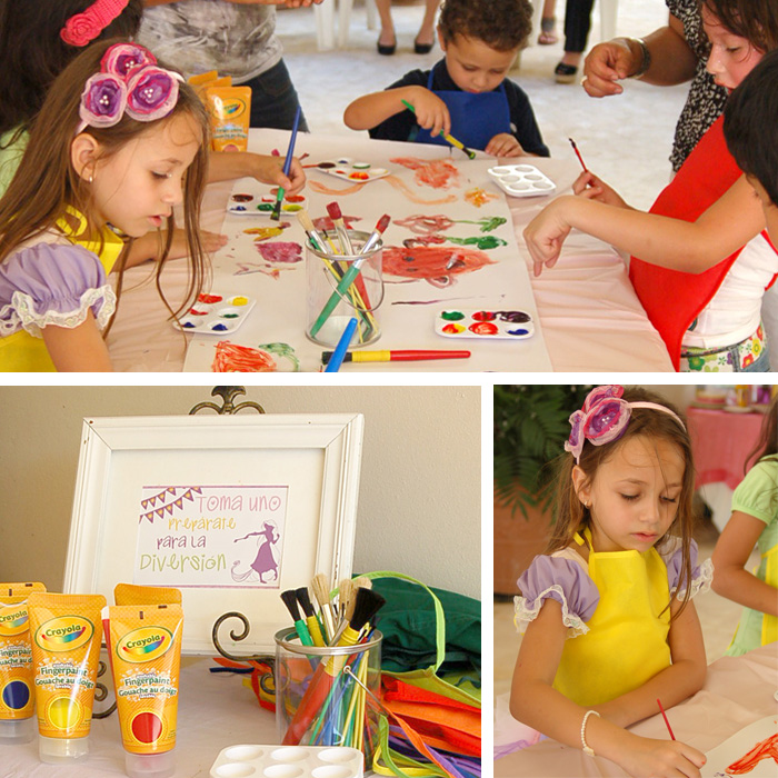 Here is what Fara said about the party- “I am sharing with you my daughter’s Rapunzel Art Party, which I styled for her sixth birthday. I got inspired in the Rapunzel character of the new Disney’s movie, Tangled. My daughter fall in love with the movie and loved the fact that Rapunzel was painting all the time (just like her). I combined her love for art and her love for the movie and this was my result. We had lots of fun preparing all, my daughter was a great helper this time, we even made homemade playdough, has favors. It was a great experience for both of us!